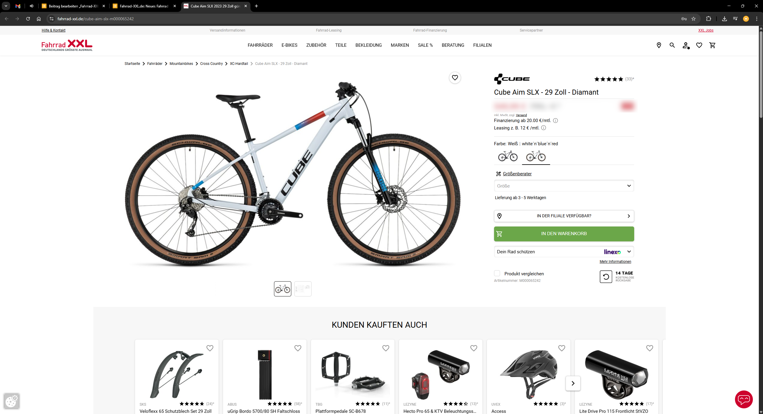 Die Registrierung im Online-Shop von Fahrrad-XXL war schnell erledigt – keine 2 Minuten hat’s gedauert -, dann noch das ausgesuchte Bike in den Warenkorb gelegt, ab zur Kasse, mit Paypal bezahlt, done!